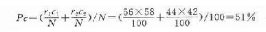 按上表的分布,二人读片的机遇一致率(Pc,agreement expected on the base of chance )如下: