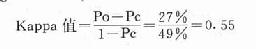 Kappa值也可由表5-7各数字直接求得,公式为: