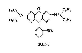 2.四乙基罗丹明(rhodamine,RIB200)为橘红色粉末,不溶于水,易溶于酒精和丙酮。性质稳定,可长期保存。结构式如下: