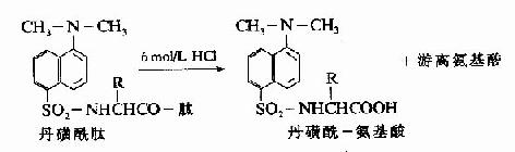 丹磺酰链酸具有强烈的黄色荧光。此法优点为灵敏性较高(比FDNB法提高100倍,样品量小于1毫微克分子)及丹磺酰氨基酸稳定性较高(对酸水解稳定性较DNP氨基酸高),可用纸电泳或聚酰胺薄膜层析鉴定。