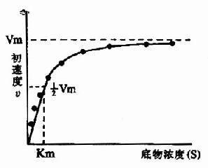 在底物浓度很低时,反应速度随底物浓度的增加而急骤加快,两者呈正比关系,表现为一级反应。随着底物浓度的升高,反应速度不再呈正比例加快,反应速度增加的幅度不断下降。如果继续加大底物浓度,反应速度不再增加,表现为0级反应。此时,无论底物浓度增加多大,反应速度也不再增加,说明酶已被底物所饱和。所有的酶都有饱和现象,只是达到饱和时所需底物浓度各不相同而已。