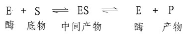 从式(1)中知,ES的生成途径来自E+S和E+P,但其中E+P生成ES的速度极小(尤其在起始阶段,P的生成很少),可以忽略不计,又因为底物浓度大大超过酶的浓度,[S]》[E],中间产物ES中的S浓度可以忽略不计,因此,ES的生成速度为: