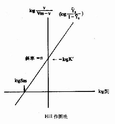 式6-13或6-18即为Hill方程式,式6-18如以logv/Vm-v对log[S]作图,也可得一直线(见下图)。