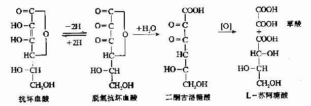 维生素C在酸性水溶液(pH<4)中较为稳定,在中性及碱性溶液中易被破坏,有微量金属离子(如Cu++、Fe+++等)存在时,更易被氧化分解;加热或受光照射也可使维生素C分解。此外,植物组织中尚含有抗坏血酸氧化酶,能催化抗坏血酸氧化分解,失去活性,所以蔬菜和水果贮存过久,其中维生素C可遭到破坏而使其营养价值降低。
