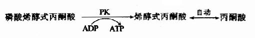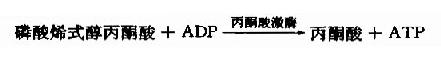 在丙酮酸激酶(pyruvatekinase,PK)催化下,磷酸烯醇式丙酮酸上的高能磷酸根转移至ADP生成ATP,这是又一次底物水平上的磷酸化过程。但此反应是不可逆的。
