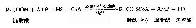 和葡萄糖一样,脂肪酸参加代谢前也先要活化。其活化形式是硫酯:脂肪酰CoA,催化脂肪酸活化的酶是脂酰CoA合成酶(acyl CoA synthetase)。
