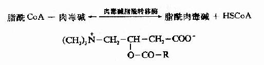 长链脂肪酰CoA和肉毒碱反应,生成辅酶A和脂酰肉毒碱,脂肪酰基与肉毒碱的3羟基通过酯键相连接。