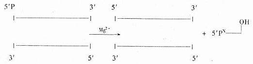 大肠杆菌核酸外切酶Ⅶ则是从单链DNA的3’端和5’端切除寡核苷酸(两种形式):