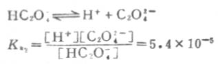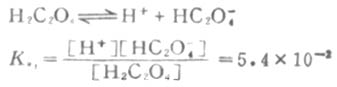 二级离解总比一级离解困难,因为H+要克服带有两个电荷的C2O2-4对它的吸引。从Ka1和Ka2可以反映这一点。草酸溶液中的HC2O-4浓度要比C2O2-4浓度大得多。