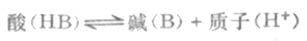 由于阿累尼乌斯的酸碱离子理论不能解一些非水溶液中进行地酸碱反应等问题,1923年布朗特(Bronsted)提出了酸碱质子理论,把酸碱概念加以推广。酸碱质子理论认为凡是能给出质子的物质都是酸,凡是能与质子结合的物质都是碱。即酸是质子的给予体,碱是质子的接受体。这样,一个酸给出质子后余下的部分自然就是碱,因为它本身就是与质子结合的。它们的关系如下: