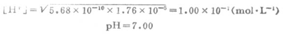 根据数学推导,当cKa(NH4+)>20Kw,且c〈20Ka(HOAc)时,计算溶液[H+]的近似公式为: