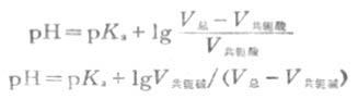 在具体配制时,为了简便起见,常用相同浓度的共轭酸碱溶液。此种情况可用式(3-13)计算所需两种溶液的体积。然后根据体积比,把共轭酸碱两种溶液混合,即得所需的缓冲溶液。设溶液的总体积是V总,则式(3-13)改写成