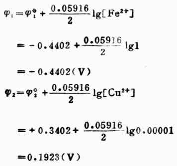 值相差较大(即Eφ),浓度的变化对电位的影响不大,不致于使反应改变方向。因此,当Eφ<0.2V 时,即使不处于标准状态,也可直接用