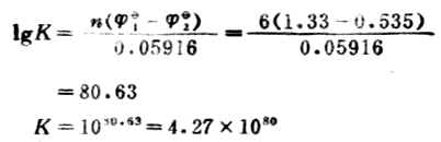 氧化还原K与反应中两个电对的标准电极电位的关系为: