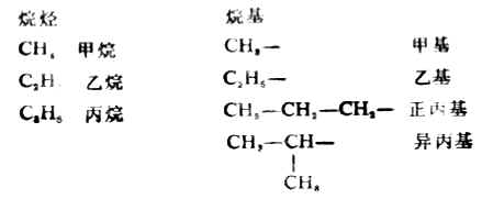 烃分子中去掉一个氢原子所剩下的原子团叫烃基。脂肪烃去掉一个氢原子所剩下的原子团叫做脂肪烃基,通常用R表示。烷烃的基叫做烷基,它的通式CnH2n+1烷基的命名根据烷烃而定。多于两个碳原子的烷烃,有可能衍生出多个不同的烷基。例如: