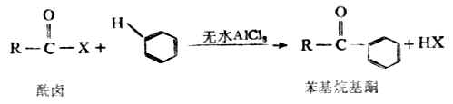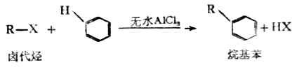 (4)傅-克反应:芳香烃在无水ALCL3作用下,环上的氢原子也能被烷基和酰基所取代。这是一个制备烷基烃和芳香酮的方法,称为傅瑞德尔-克拉夫慈反应,简称傅-克反应。