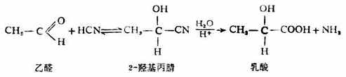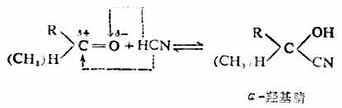 醛及脂肪族甲基酮与氢氰酸作用,生成α-α羰基腈。