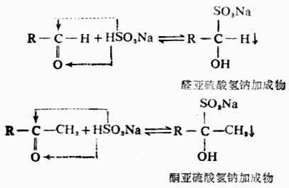 醛、脂肪族甲基酮和低级环酮(成环的碳原子在8个以下)都能与过量的饱和亚硫酸氢钠溶液发生加成反应,生成稳定的亚硫酸氢盐中成物。