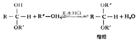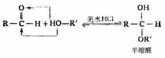 醛与醇在干燥氯化氢的催化下,发生加成反应,生成半缩醛。