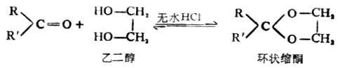 酮在同样情况下不易生成缩酮。但是环状的缩酮比较容易形成。例如:
