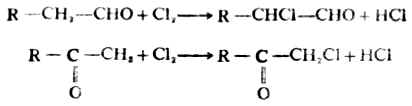 醛或酮的α氢原子易被卤素取代,生成α-卤代醛或酮。例如: