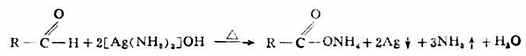 土伦试剂是由硝酸银碱溶液与氨水制得的银氨配合物的无色溶液。它与醛共热时,醛被氧化成羧酸,试剂中的一价银离子被还原成金属银析出。由于析出的银附着在容器壁上形成银镜,因此这个反应叫做银镜反应。