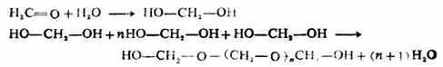 甲醛溶液长期放置后,生成多聚甲醛的白色固体。一般认为甲醛在水溶液中是以水合物形式存在的,这些水合物失去缩合即生成链状的多聚甲醛。