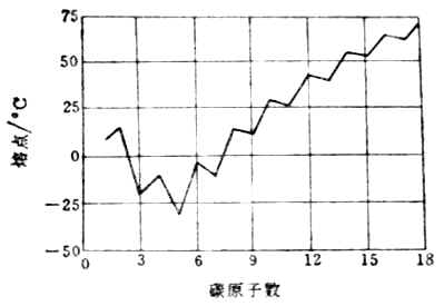 饱和脂肪酸熔点随着分子中碳原子数的增加呈锯齿形变化(图16-1)。含偶数碳原子的羧酸其熔点比其相邻的两个含奇数碳原子羧酸分子的熔点高。这可能是由于偶数碳原子羧酸分子较为对称,在晶体中排列更紧密的缘故。一些羧酸的物理常数和pKa值见表16-2。