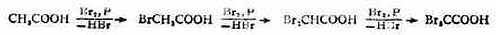 与羰基相似,羧基也能活化α-H,但其致活作用比羰基小得多。因此,羧酸中的α-H被卤素取代的反应较慢,需加入红磷、硫或碘等作催化剂或在光照下才易进行。