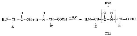 两分子α-氨基酸(相同或不同)可借一个分子中的羧基和另一分子中的氨基脱去一分子水,缩合成为一个简单的肽,即二肽。