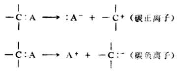 碳与其它原子间的σ键断裂时,可得到碳正离子或碳负离子: