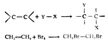 两个原子加到一个π键上形成两个σ键的反应叫加成。