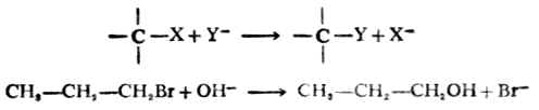 连接在碳原子上的一个原子或官能团被另一个原子或官能团置换的反应叫取代。在反应中,该碳原子上有一个σ键断裂和一个新的σ键生成。