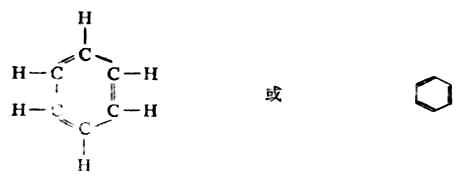 1865年凯库勒首先提出了苯的环状结构,即六个碳原子彼此连结成环,每个碳原子上都结合着一个氢原子。为了满足碳的四价,凯库勒提出如下的构造式: