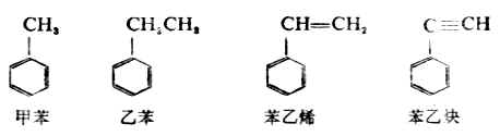 苯的同系物是指苯分子中氢原子被烃基取代的衍生物。当苯环上只有一个取代基时,可以苯环为母体命名,烷基作取代基。若侧链为不饱和烃基(如烯基或炔基)等,则以不饱和烃为母体命名,苯环(苯基)作为取代基。例如: