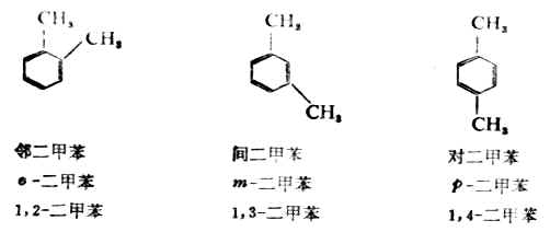 当苯环上有两个取代基时,则有三种位置异构体。两个取代基的相对位置,可用邻(o)、对(p)和间(m)或数字表示。