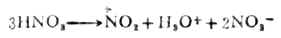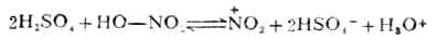 在有些情况下,硝化反应不用混酸而用硝酸。这时的硝金翁离子是通过下式生成的: