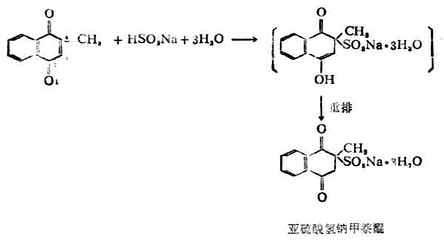 醌分子中含有共轭双键,可发生1,4-加成。如维生素K3与亚硫酸氢钠的加成。