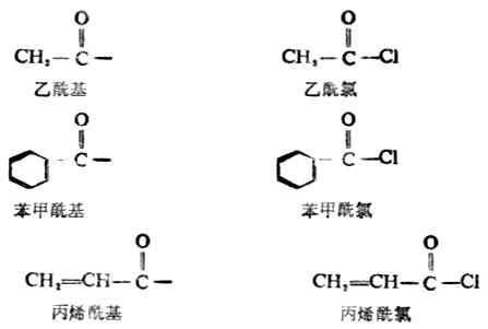 最常见的酰卤是酰氯和酰溴,他们可根据相应的酰基来命名。例如: