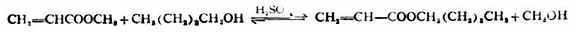 酰卤,酸酐和羧酸酯与醇反应均有羧酸酯生成,其中,羧酸酯的醇解是可逆反应,须在催化剂存在下进行。这个反应是从一种羧酸酯转变成另一种羧酸酯。因此又叫酯交换。例如: