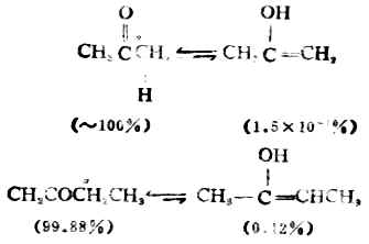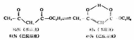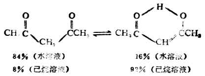 在1,3-二羰基化合物中,烯醇式的比例大大增加,例如,2,4-戊二酮(乙酰丙酮)的水溶液中含16%的烯醇,而其己烷溶液中,烯醇式占92%。