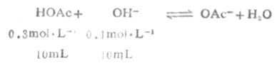 从反应看出HOAc有1/3被OH-中和,生成OAc-和H2O,溶液的总体积为20mL。