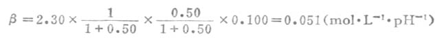 β极大=0.575c总=0.575*0.100=0.0575(mol.L-1.pH-1)