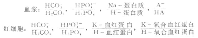 正常人血浆的PH值相当恒定。血液所以具有缓冲作用,是因为血液是一种很好的缓冲溶液。血液中存在下列缓冲系(HA表示有机酸):