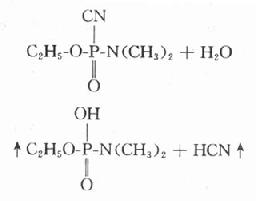 3.水解毒物在体内不论自已本身或在酶的催化下水起反应,生成无毒的和有毒的化合物,如光气与水作用生成盐酸和二氧化碳,而塔崩水解后生成氢氰酸;